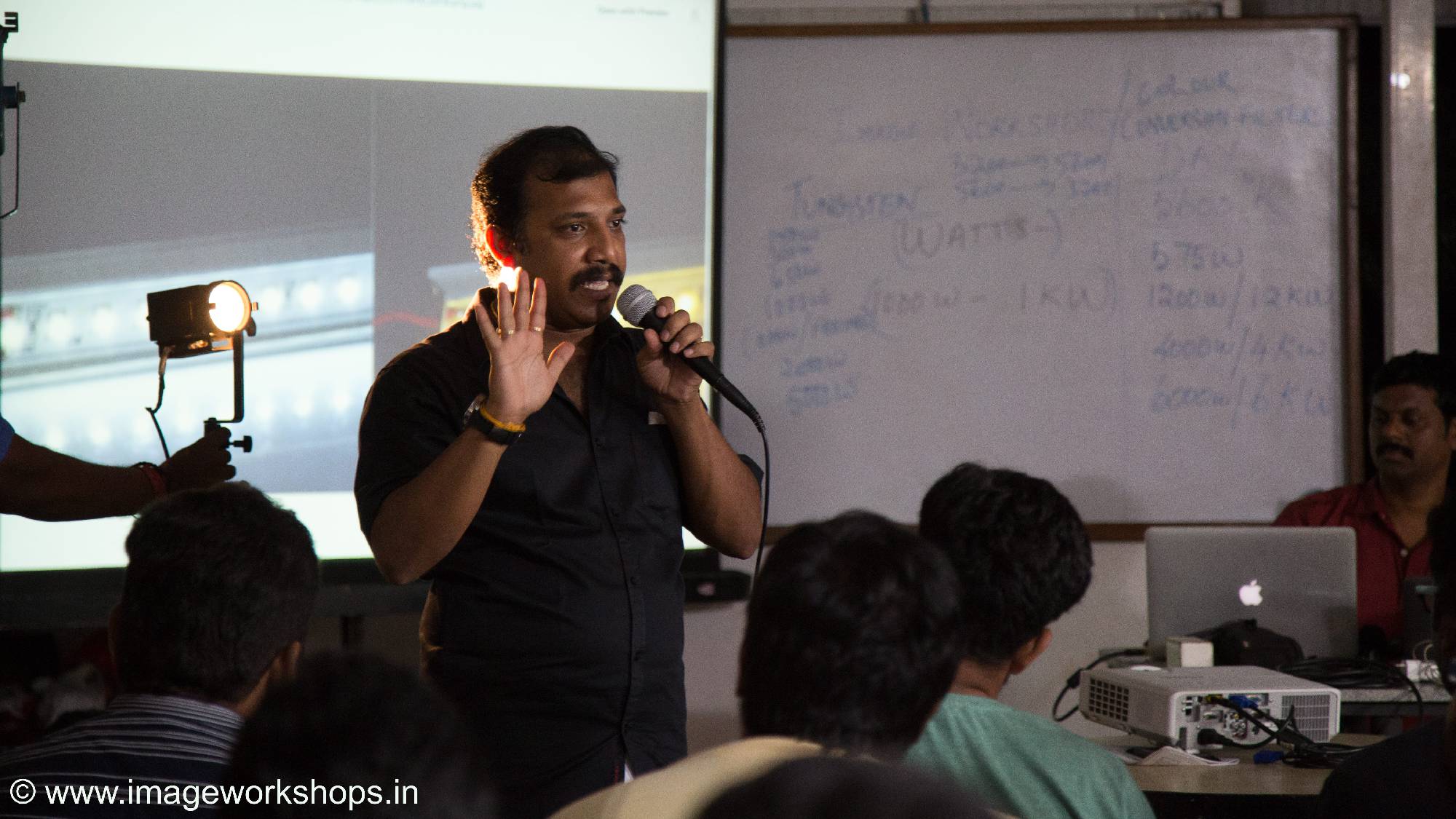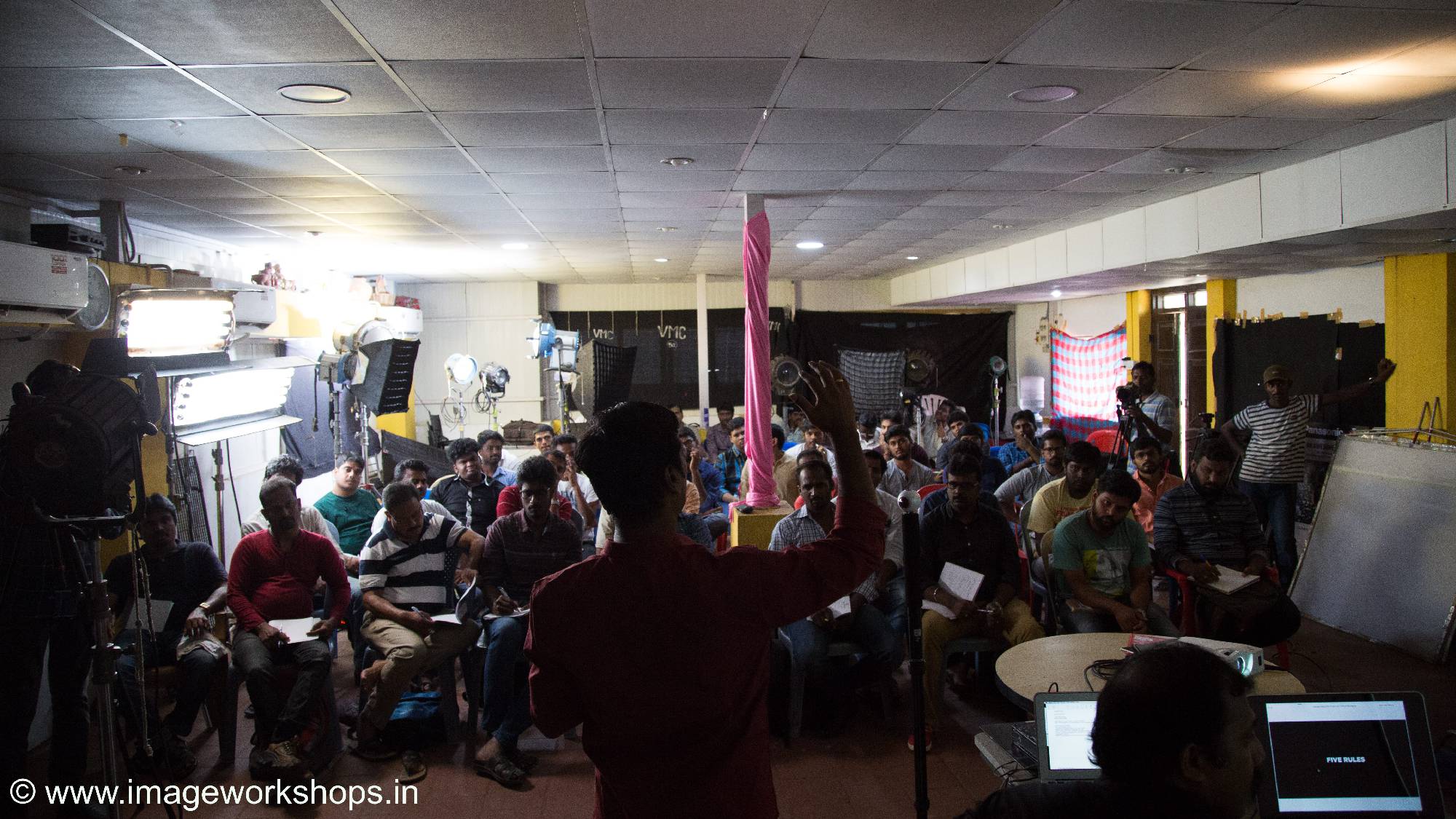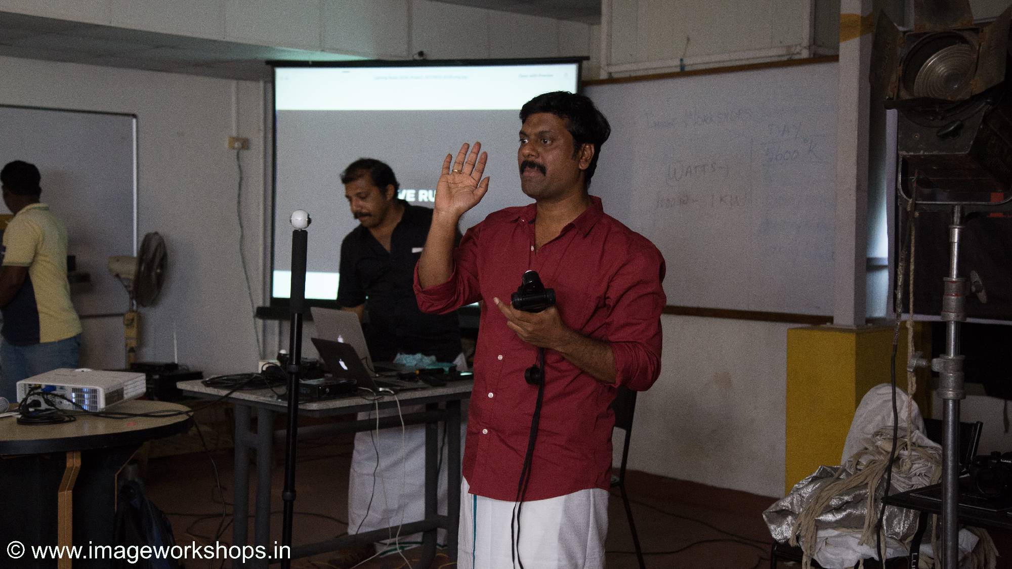 ஒளிப்பதிவின் அடிப்படை என்ன..? ஒளியமைப்பில் கவனிக்க வேண்டியவை எவை..? அவை ஏன் முக்கியத்துவம் பெறுகிறது என்பதையும் அவற்றை எல்லாம் நடைமுறையில் சாத்தியமாக்குவது எப்படி என்பதையும் செய்முறை வகுப்பாக நடத்தினோம். அதற்காக, நாங்கள் திரைத்துறையில் பயன்படுத்தும், தொழில்முறை கருவிகளை, விளக்குகளை, அதன் துணைக்கருவிகள் அனைத்தையும் வரவழைத்திருந்தோம்.