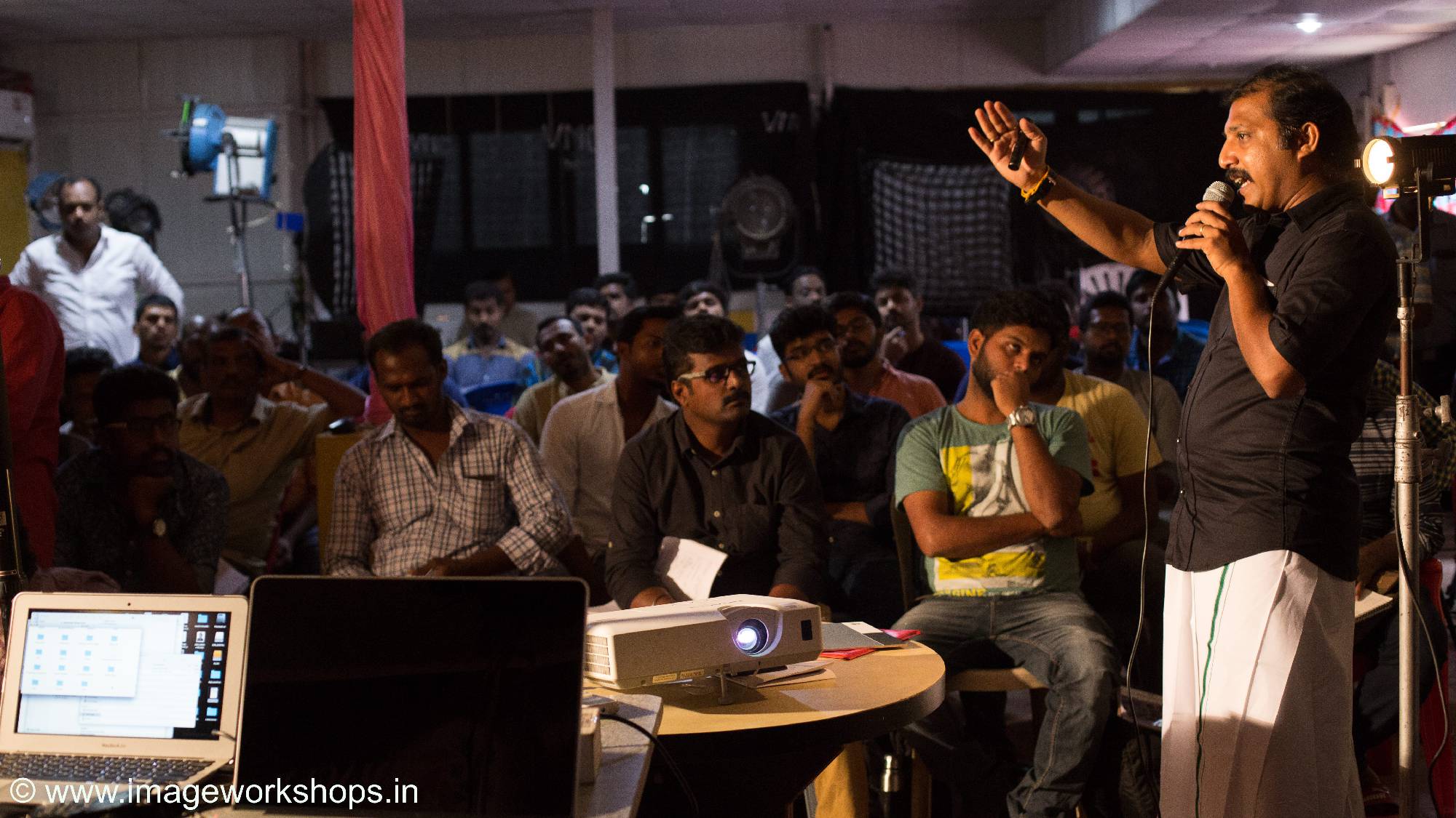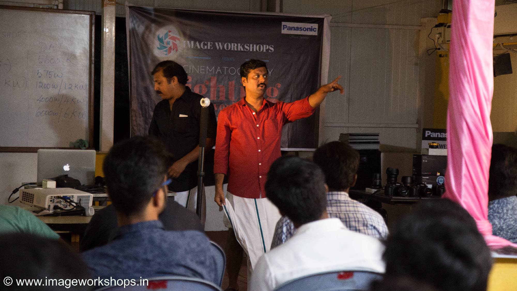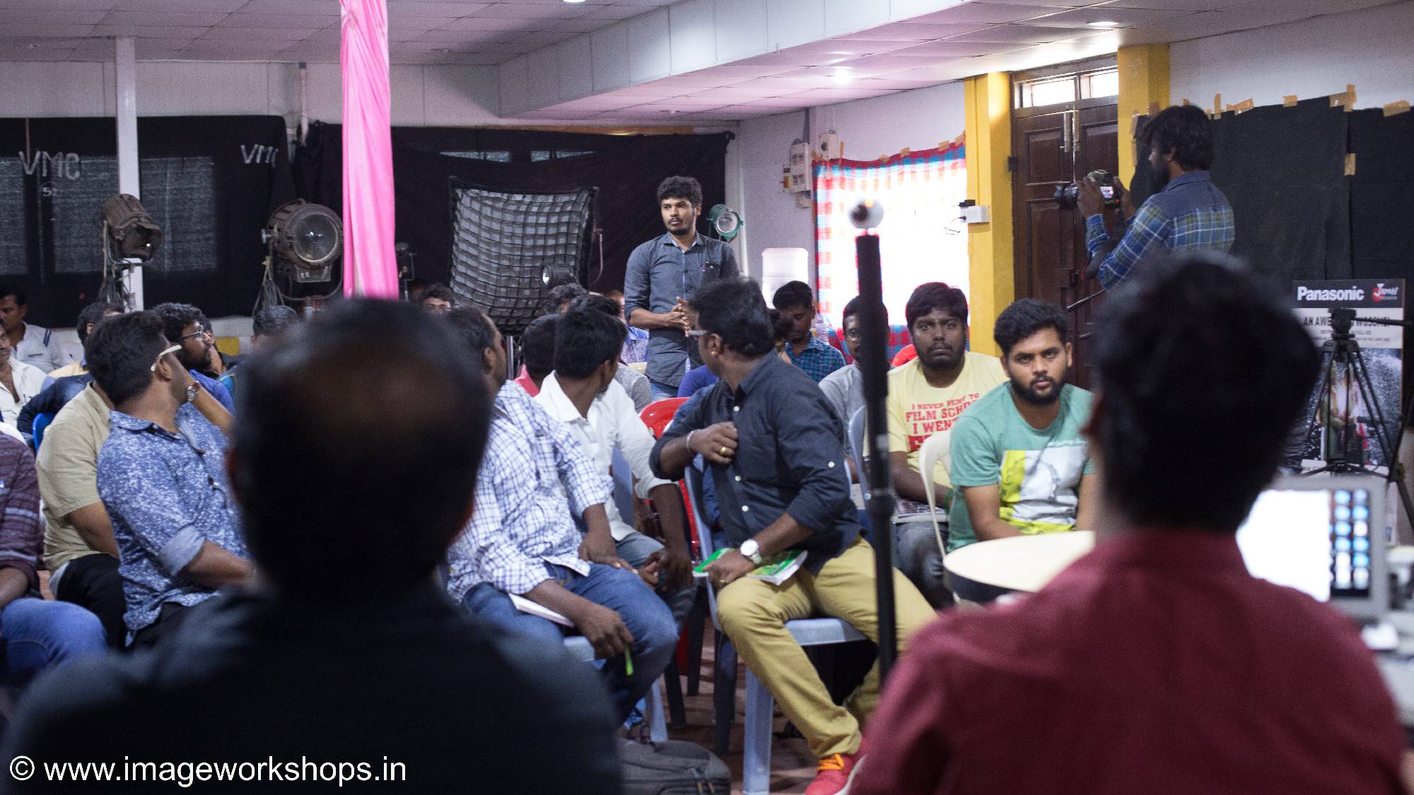 ஒளிப்பதிவின் அடிப்படை என்ன..? ஒளியமைப்பில் கவனிக்க வேண்டியவை எவை..? அவை ஏன் முக்கியத்துவம் பெறுகிறது என்பதையும் அவற்றை எல்லாம் நடைமுறையில் சாத்தியமாக்குவது எப்படி என்பதையும் செய்முறை வகுப்பாக நடத்தினோம். அதற்காக, நாங்கள் திரைத்துறையில் பயன்படுத்தும், தொழில்முறை கருவிகளை, விளக்குகளை, அதன் துணைக்கருவிகள் அனைத்தையும் வரவழைத்திருந்தோம்.
